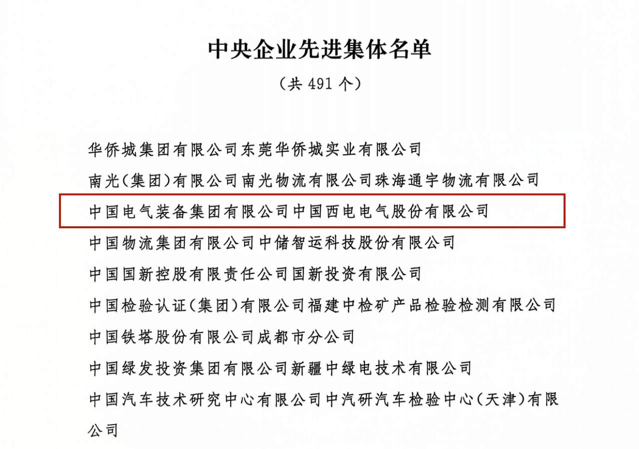 中央企業(yè)先進集體和勞動模范每5年評選一次,是國務院國資委系統(tǒng)的最高級別榮譽。在中華人民共和國成立75周年之際, 為表彰先進,樹立典型,進一步激勵中央企業(yè)廣大職工在全面推動國資央企高質量發(fā)展的新征程中建功立業(yè),最終由人力資源社會保障部、國務院國資委聯(lián)合表彰。此次榮獲“中央企業(yè)先進集體”稱號,不僅是對西電近年來辛勤耕耘和不懈努力的肯定,更是對其在科技創(chuàng)新、產業(yè)發(fā)展和社會責任等方面取得顯著成績的表彰。西電將以此次榮獲“中央企業(yè)先進集體”稱號為契機,進一步加大科技創(chuàng)新力度,提升產業(yè)發(fā)展水平,積極履行社會責任,為建設世界一流企業(yè)貢獻西電力量!