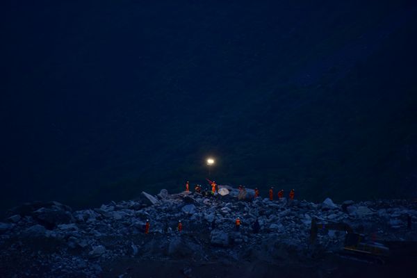 照亮了黝黑的茂縣山體垮塌救援現(xiàn)場(chǎng),