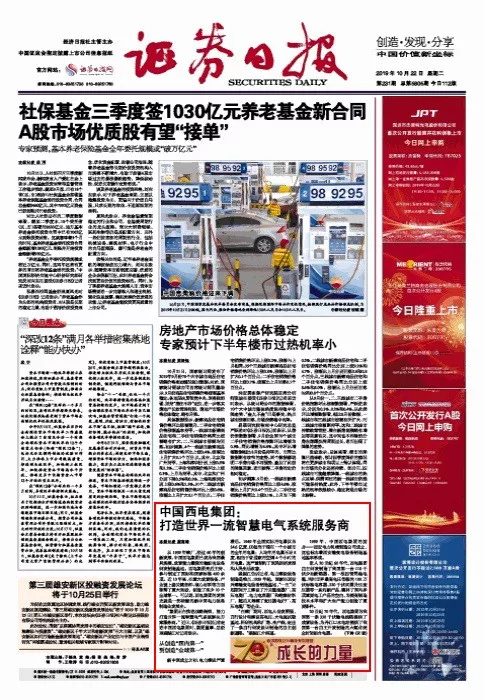 【按】10月22日,《證券日?qǐng)?bào)》頭版系統(tǒng)回顧了中國西電集團(tuán)60年創(chuàng)新發(fā)展歷程,聚焦集團(tuán)公司積極推進(jìn)轉(zhuǎn)型升級(jí)和高質(zhì)量發(fā)展,努力打造世界一流智慧電氣系統(tǒng)解決方案服務(wù)商的生動(dòng)實(shí)踐。全文如下:
