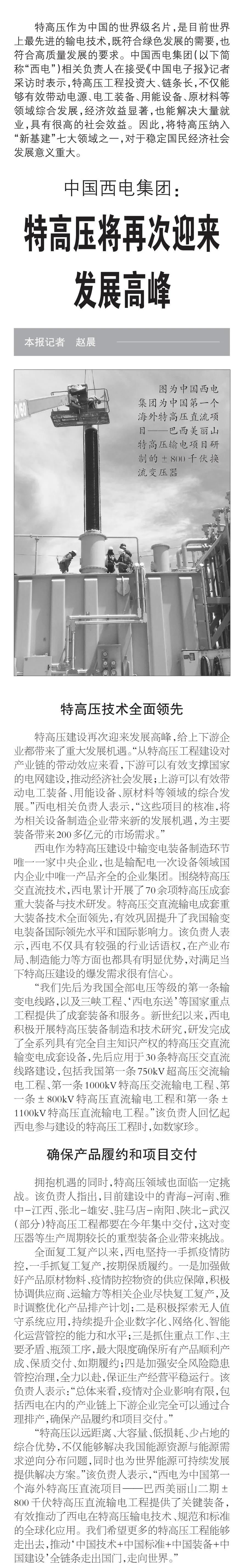 中國(guó)電子報(bào)丨中國(guó)西電集團(tuán):特高壓將再次迎來(lái)發(fā)展高峰