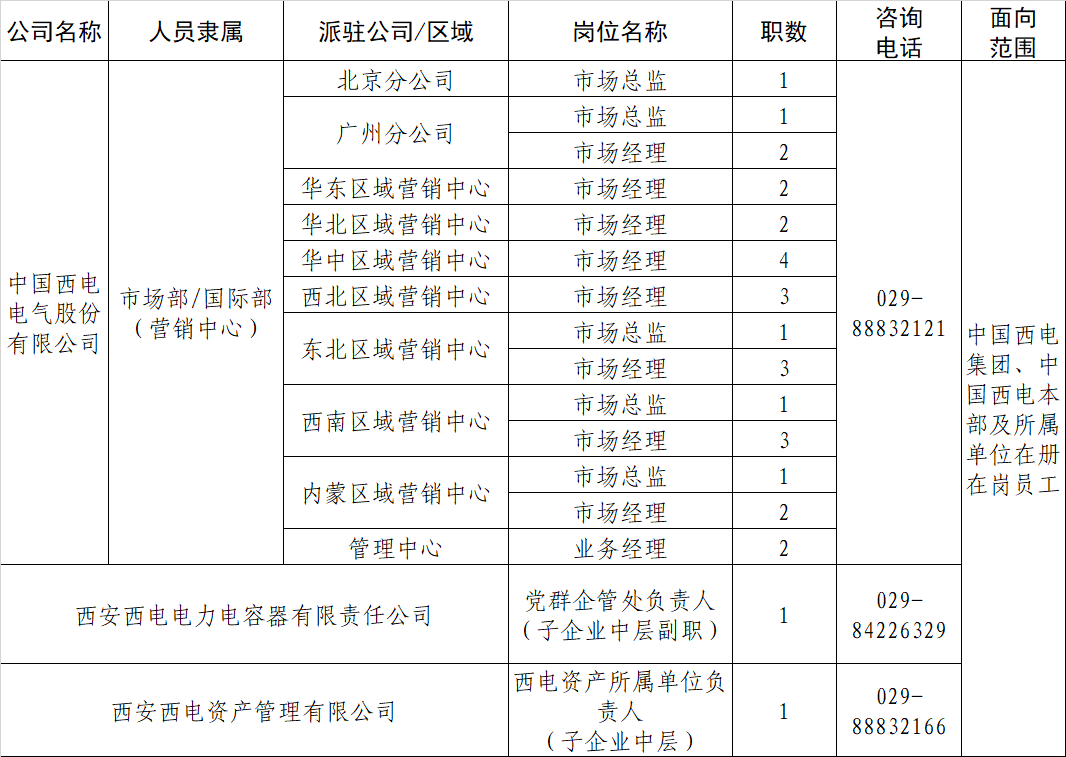 1.應(yīng)聘人員應(yīng)為中國西電集團、中國西電本部及所屬單位在冊在崗員工;