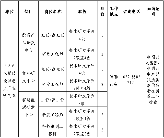 1.本次面向中國西電集團(tuán)、中國西電本部及所屬單位在冊在崗員工與社會進(jìn)行公開招聘;